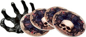 DWK - Helping Hand - Beautiful Gothic Skull Beverage Coasters with Creepy Skeleton Hand Holder for Halloween Home Kitchen Dining and Bar Décor Accent, 5.5-inch