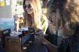 - BEER TASTING - The chalkboard panel across the beer holder base, soapstone pencil for beer labeling, and hollowed areas below beer sampler glasses for beer caps make for an authentic tasting experience