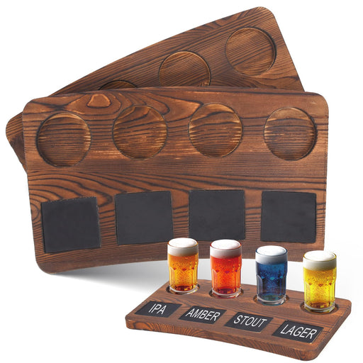 MyGiftBrand: MyGift Color: Brown - 2 Pack Features: Set of 2 rustic dark brown wood beer flight tasting sets with 8 glasses, serving boards, and erasabl...