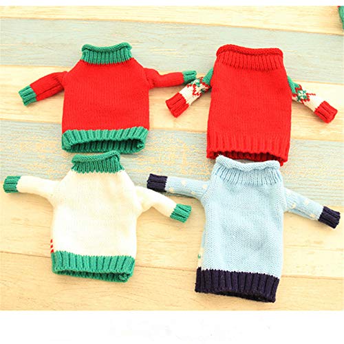 Details: Xmas Wine Bottle Covers Features: Fancy knitting sweaters with Elk, Snowman, Christmas Tree, letter design and hats. Elasticity fancy fits most wine bottles. Great for Christmas decoration at home, coffee shop, hotel lobby, restaurant and Sweater Party. Christmas knit sweater bottle topper with matching knit Santa cap is great for gift giving or to decorate your table for the holidays. Handle design, convenient to carry and light weight. A quick and easy way to dress up your holiday table! Dress up your bottled holiday gifts, just place them over a wine bottle on your kitchen counter to add some holiday cheer or give them as gifts. What You Will Get 1 set x Elk Ugly Sweater Wine Bottle Cover with Hat 1 set x Snowman Ugly Sweater Wine Bottle Cover with Hat 1 set x Christmas Tree Ugly Sweater Wine Bottle Cover with Hat 1 set x Letter Ugly Sweater Wine Bottle Cover with Hat Warm Reminder: 1. Please comprehensive pictures and text descriptions to determine. Tiny measuring error is allowable in the normal range. 2. There might be a little color difference due to the monitor, camera or other factors, please refer to the physical item.